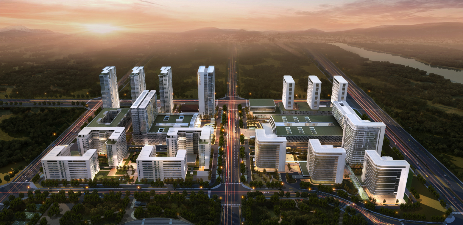科技園項目一期總建筑面積約22.5萬平方米,包含6棟研發樓和2層地下車庫(地下共3層,一二期地下相互聯通),還設有下沉廣場和商鋪,敞亮的下沉廣場將所有建筑連在了一起。T6樓設置了戶外屋頂花園,特別鋪設